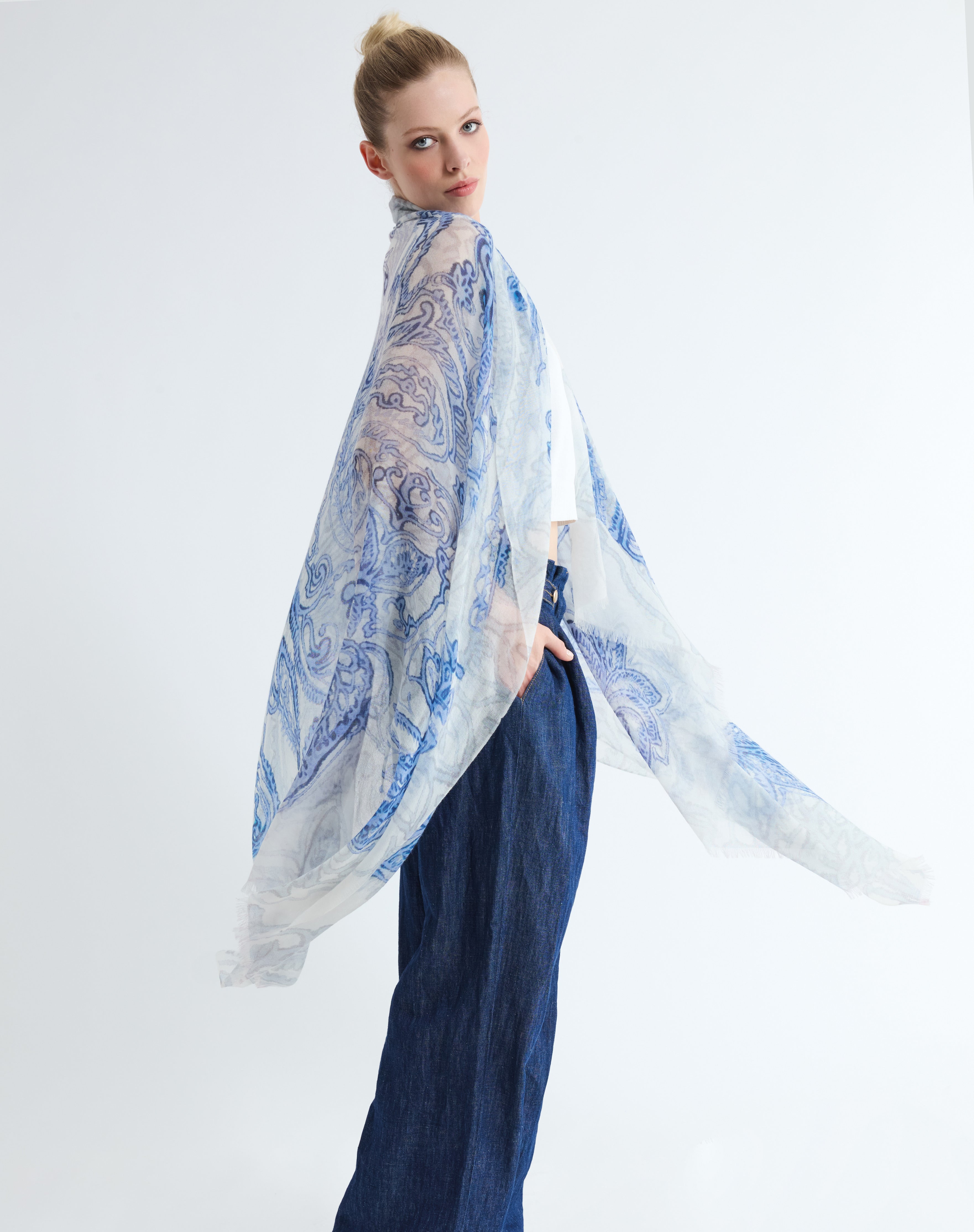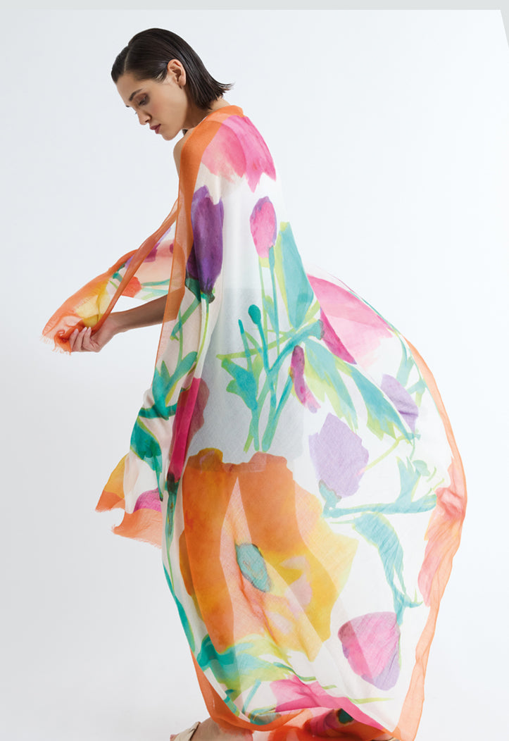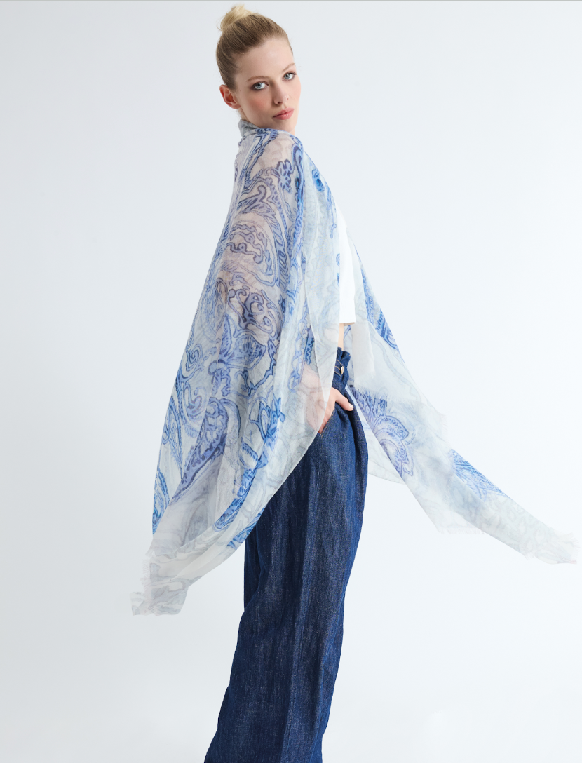At 19 Andrea’s 47 we keep following the dream of making precious scarves and jackets by using only extra fine cashmere, silk and linen fibres, exploiting the finest Italian artisan tradition. Our products are made in Tuscany-Italy with antique shuttle looms, they are then spray dyed by hand, printed and often hand painted. Each piece is carefully checked by our experts as to guarantee the highest standards of quality and uniqueness of our products. In our collection there are scarves, shawls, wraps, throws, capes, and jackets. 19 Andrea’s 47 is sold in more than 500 boutiques all over the world. EVERY SEASON HAS ITS SCARF is our motto.