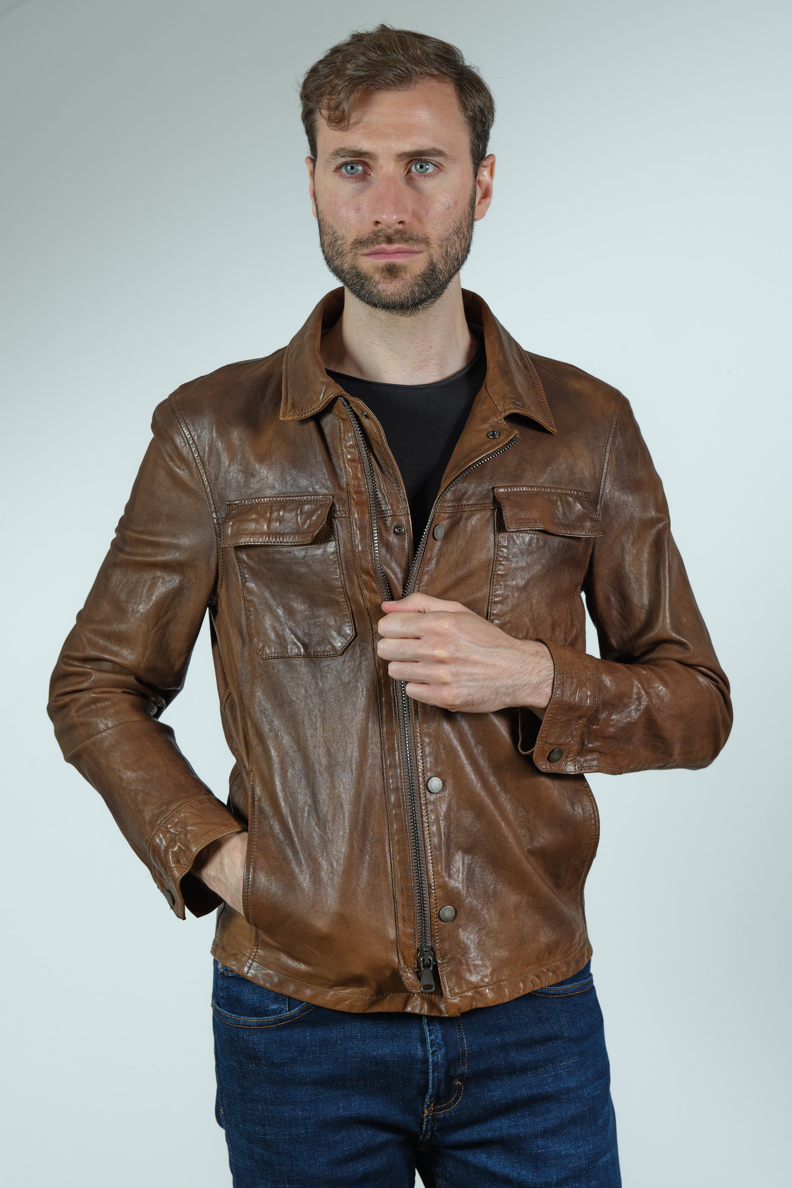 Garrett is a made in Italy leather clothing brand since 1982. Every jacket is the unique result between high quality raw materials and craftsmanship, which create a one-of-a-kind, bold, and distinguishing item. The styles take inspiration from the vintage garments of the past, which are adapted to the latest trends