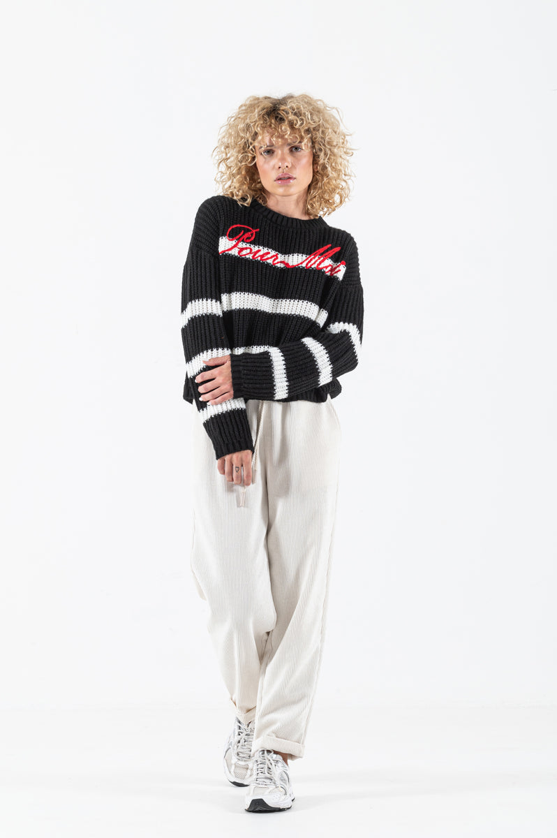 Pour Moi is the total look in women's ready-to-wear focused on knitwear, attentive to interpreting the continuous evolution of fashion. The production process of this brand takes place exclusively on the national territory to guarantee and protect the Made in Italy . These choices determine a high quality product both in terms of style and materials, offering new flashes every week and guaranteeing fast restocking on the items already offered. The Pour Moi collection interprets a particular point of view of femininity and fashion that leads to seeing things and relating to the world in different ways. Because if opposites attract, if the glass when it is half empty is also half full, it means that the possibilities are many, from the most ethereal romanticism to the most decisive boldness. This is the essence of Pour Moi creations.